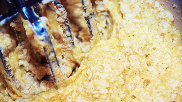 - Wij kneden de producten. Het beste is om een mixer te gebruiken.