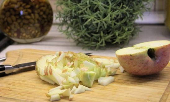 - Op dit moment zullen we de vulling behandelen. We wassen de appel.