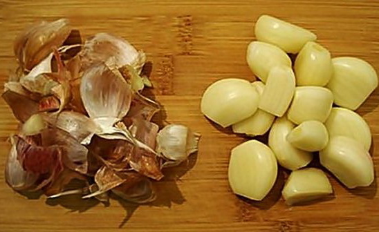 - Haal de knoflook uit elkaar in teentjes, pel hem af.