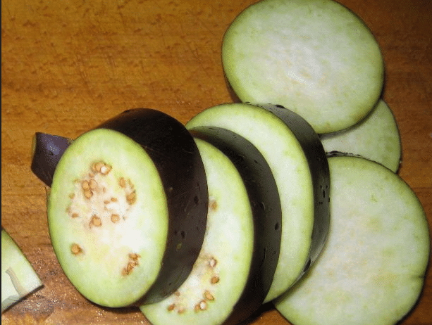 - Dus het eerste wat je moet doen is de aubergine. Ze moeten grondig worden gewassen en vervolgens worden geschild. Snijd de geschilde aubergines in de lengte in 2-3 delen en bak ze vervolgens in een voorverwarmde koekenpan in een kleine hoeveelheid plantaardige olie.