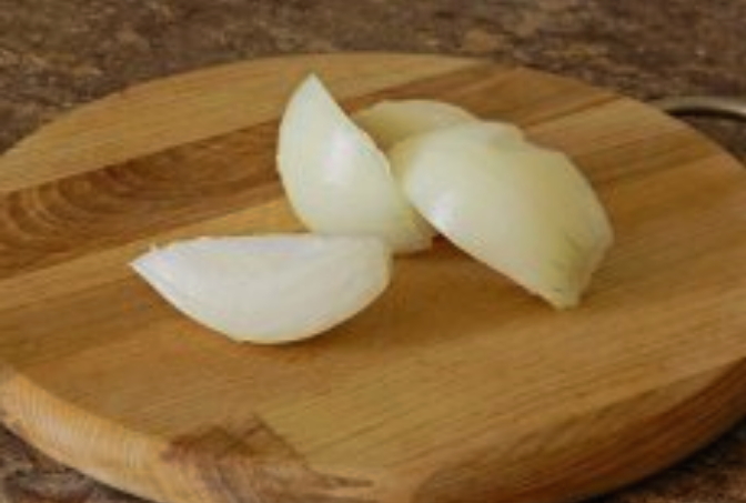 - Schil wortelen en uien, spoel ze af en snijd ze in 2-3 stukken.