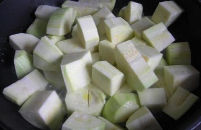 - Courgette moet worden gewassen en geschild en geschild (als je jonge groenten gebruikt, dan kan dit worden weggelaten), in grote blokjes gesneden.