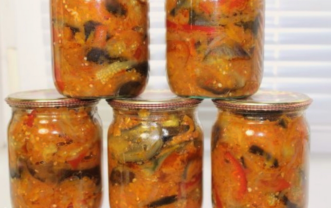 - Aubergine tongsalade van schoonmoeder voor de winter zonder sterilisatie