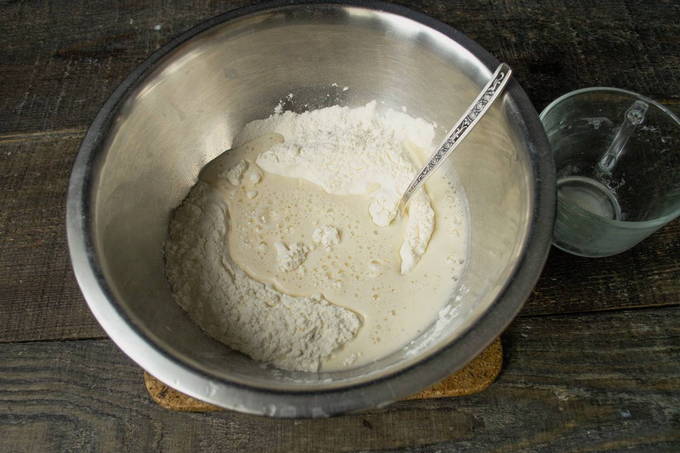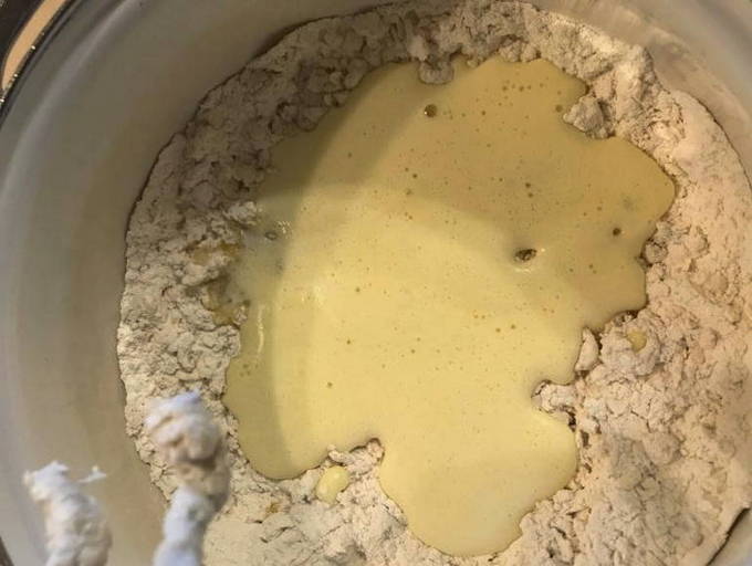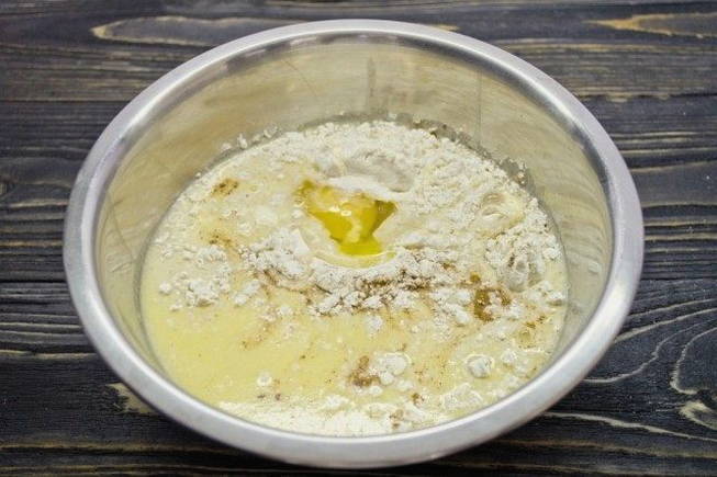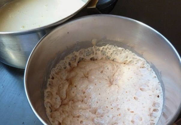 - We verwarmen melk en lossen er suiker en droge gist in op. Giet het afgewerkte mengsel bij de rest van de producten.