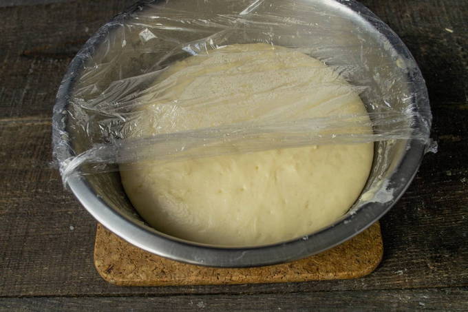 - We bedekken de gerechten met de bereiding met huishoudfolie en zetten 2 uur op een warme plaats. Na een tijdje is het gerezen deeg klaar, je kunt het gebruiken voor paastaart.
