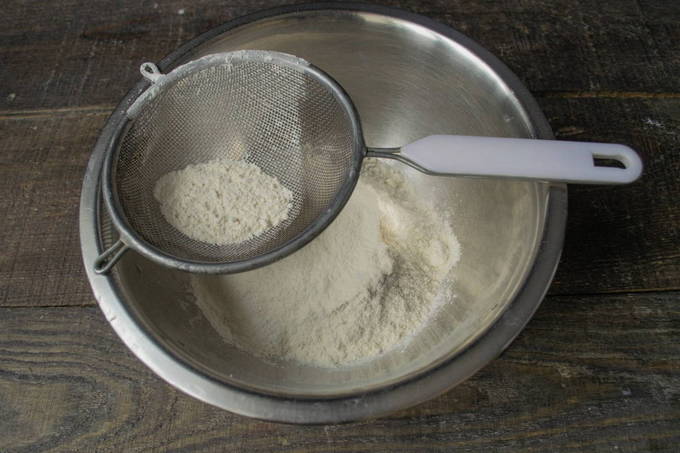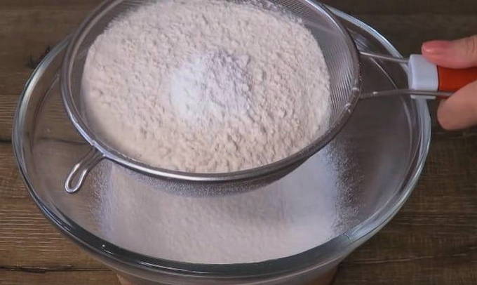 - Zeef eerst de bloem grondig door een fijne zeef. De kwaliteit van het eindproduct hangt af van een eenvoudige stap.