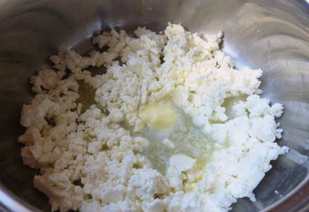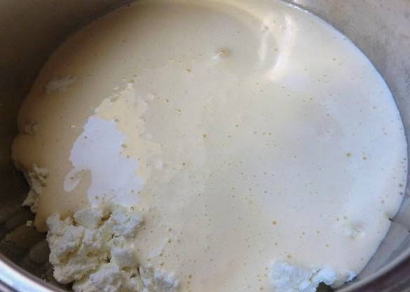 - Giet het ei-suikermengsel bij de wrongel.