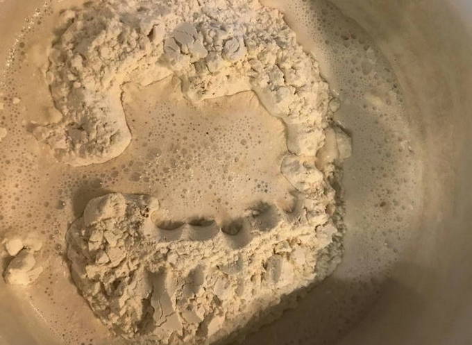 - Zeef de bloem apart en giet de geactiveerde gist erin.