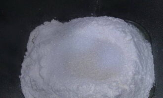 Giet er droge gist over en strooi er suiker over. We sturen de kom naar de broodbakmachine, sluiten het deksel en selecteren de modus "Deeg".