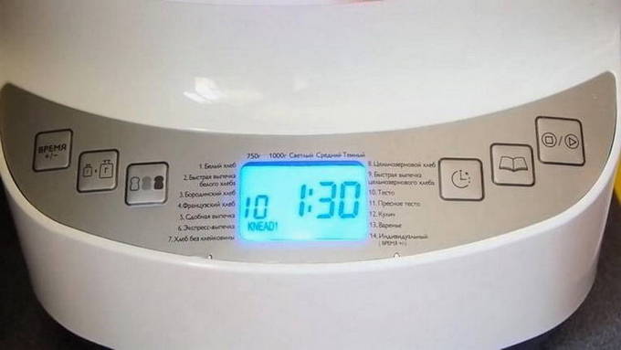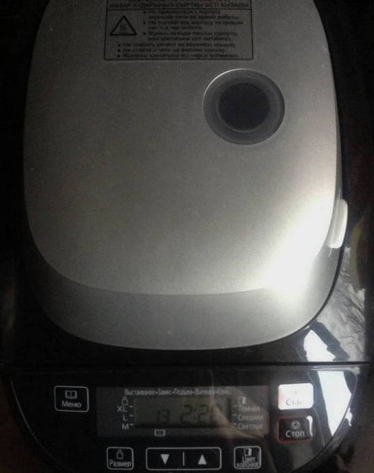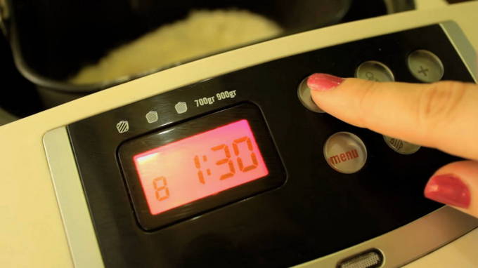 - We sturen de kom met alle inhoud naar de broodbakmachine, sluiten het deksel en zetten het programma "Gistdeeg" aan. We zetten de timer op anderhalf uur en drukken op "Start".
