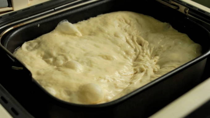 Weelderig deeg met droge gist voor taarten in een broodbakmachine
