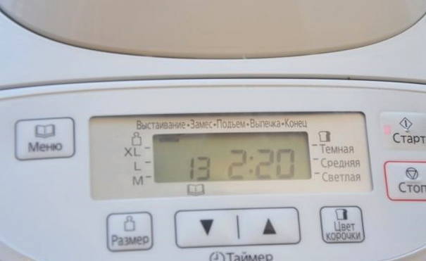 - We sluiten het deksel van de broodmachine en selecteren het programma voor het kneden van het deeg. We hebben het op nummer 13.