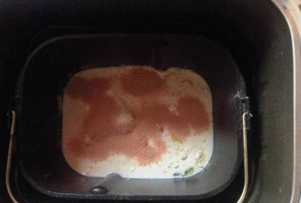 Botergistdeeg, gebakken in een broodbakmachine, blijkt luchtig en erg lekker te zijn. Eerst worden droge ingrediënten op de bodem gelegd en vervolgens vloeibare.Het kneden van het deeg duurt iets meer dan twee uur in dit merk broodmachine.