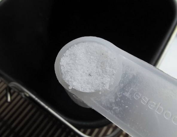 - Giet 1 eetlepel suiker en 2 eetlepels zout op de bodem van de broodmachine.