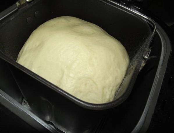 Om het deeg te bereiden, heb je water, plantaardige olie, zout, bloem, suiker en droge gist nodig. Alle ingrediënten worden in een bepaalde volgorde in de kom van de broodbakmachine geplaatst. Het kneedproces van het deeg duurt anderhalf uur. Op dit moment kunt u uw gang gaan terwijl de machine alles voor u doet.