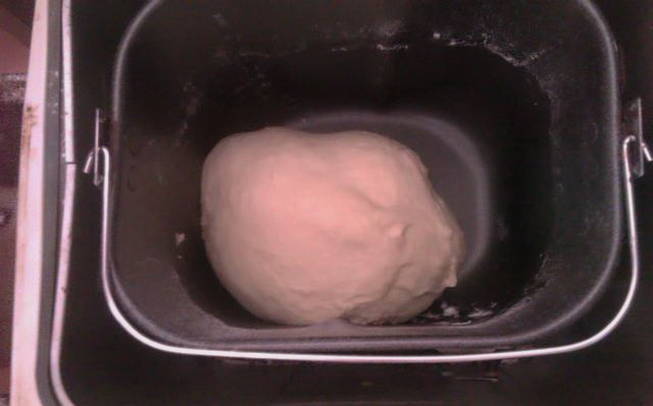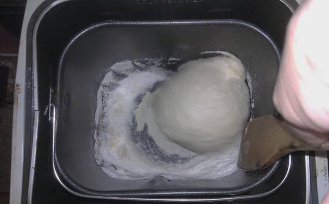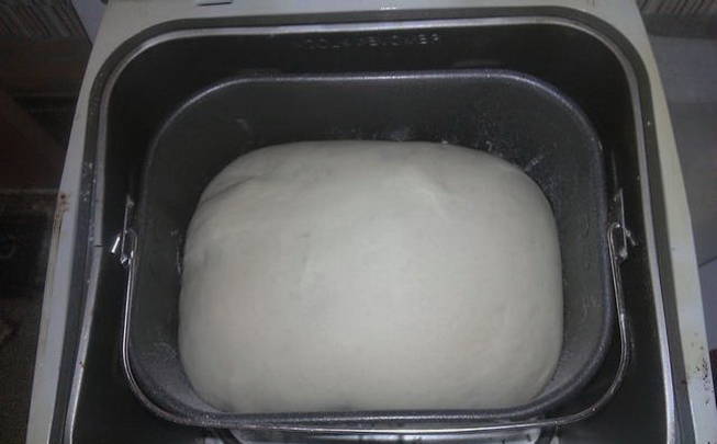 Om het deeg te bereiden, heb je water, plantaardige olie, zout, bloem, suiker en droge gist nodig. Alle ingrediënten worden in een bepaalde volgorde in de kom van de broodbakmachine geplaatst. Het kneedproces van het deeg duurt anderhalf uur. Op dit moment kunt u uw gang gaan terwijl de machine alles voor u doet.
