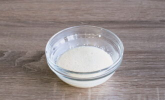 Giet droge gist in een bord, vul het met twee eetlepels warm water en roer. Laat het 15 minuten trekken. Gedurende deze tijd wordt de gist geactiveerd.