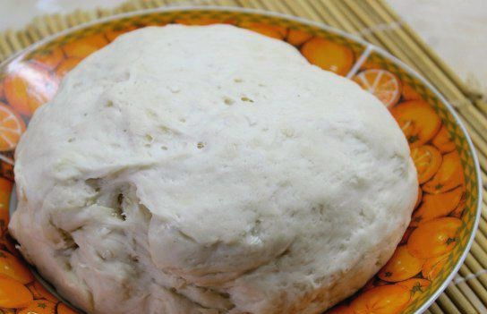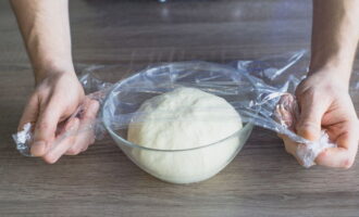 Kneed het deeg met boter glad en leg het op een bord, dek af met huishoudfolie en laat ongeveer een uur op een warme plaats staan. Deze tijd is voldoende om het product te laten rijzen.