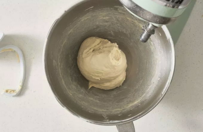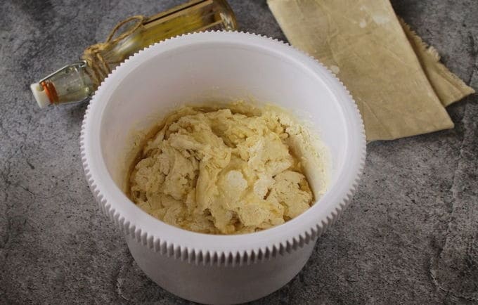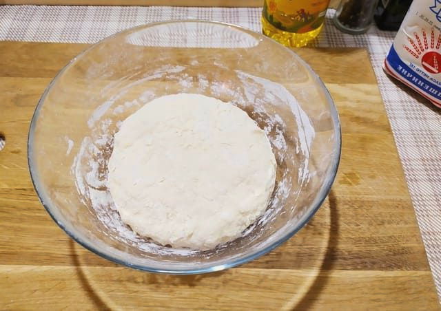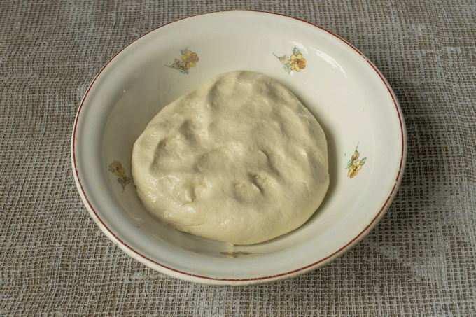 - Giet de resterende bloem bij het mengsel, giet ook de plantaardige olie erin. Kneed tot een dichte en homogene deegklomp is gevormd. We staan erop dat het product 15-20 minuten op een warme plaats blijft.