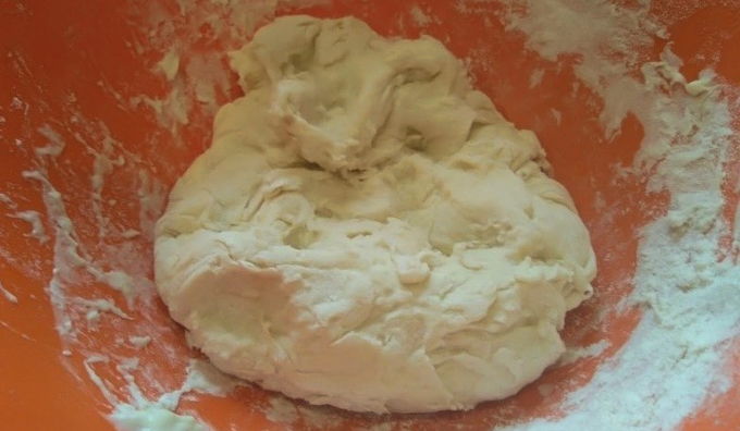 - Zeef hier bloem en voeg soda toe. Kneed het deeg met je handen. Voeg aan het einde van het proces de benodigde hoeveelheid olie toe en roer opnieuw.
