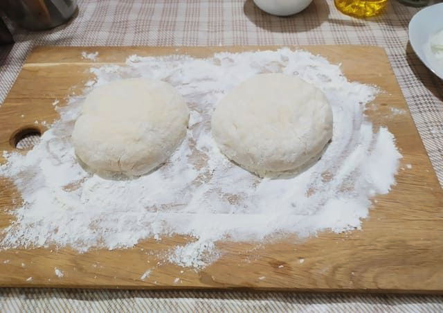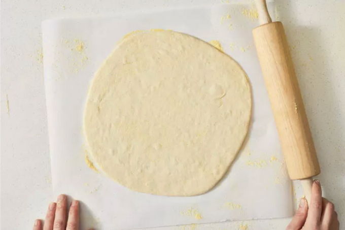 - We geven het deeg een beetje rust (3-5 minuten is genoeg), rollen het dan in bloem en rollen het uit in de vorm die nodig is voor pizza. Klaar!