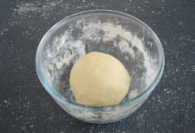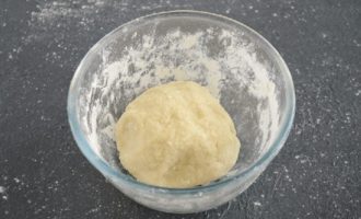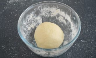 Kneed het deeg met je handen of met een keukenmachine tot een glad deeg. Blijf ongeveer 10 minuten roeren. Laat het deeg ongeveer 15 minuten op kamertemperatuur staan zodat de gluten in de bloem gaan werken en het deeg later niet breekt. Tegelijkertijd kan de kom met het deeg worden afgedekt met een deksel of worden vastgedraaid met huishoudfolie, zodat het niet verwert.