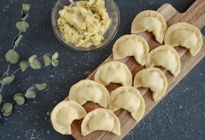 De lekkerste dumplings met aardappelen worden verkregen in de thuiskeuken. Om te voorkomen dat de vulling eruit komt en het deeg scheurt tijdens het kookproces, moet het goed gaar zijn. Het deeg is snel bereid, geschikt voor mensen die allergisch zijn voor eieren, omdat dit product niet wordt gebruikt.