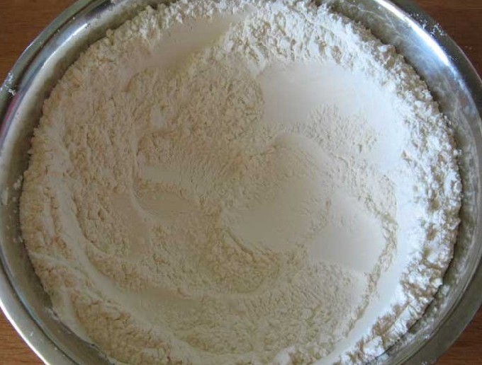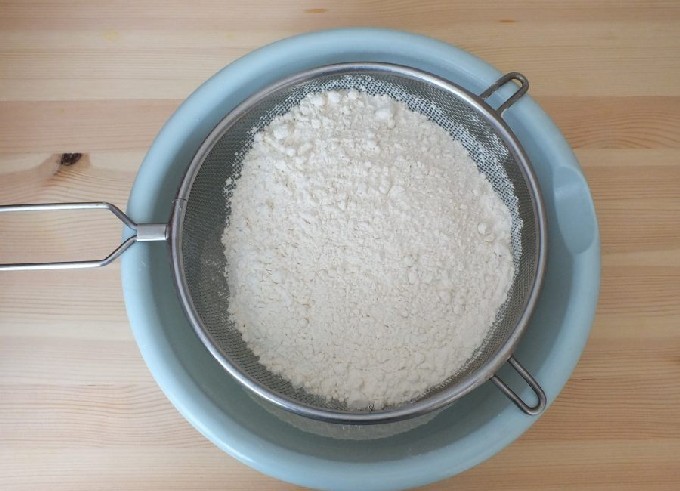 - Het is wenselijk om meel aan te schaffen met een sterk glutengehalte van minimaal 13%. Zeef het twee keer in een aparte container.