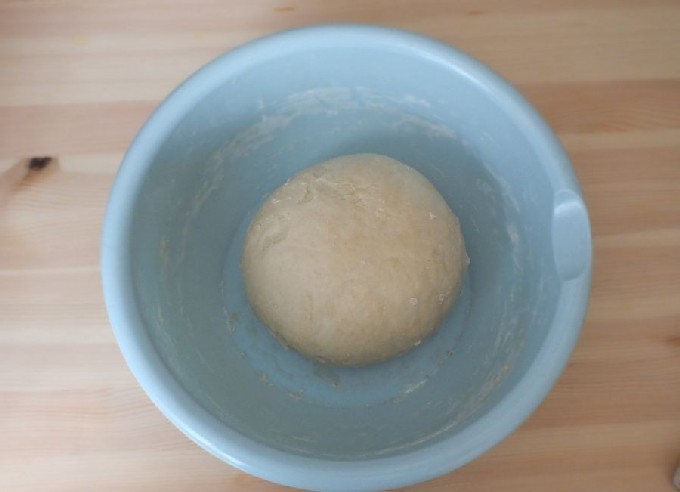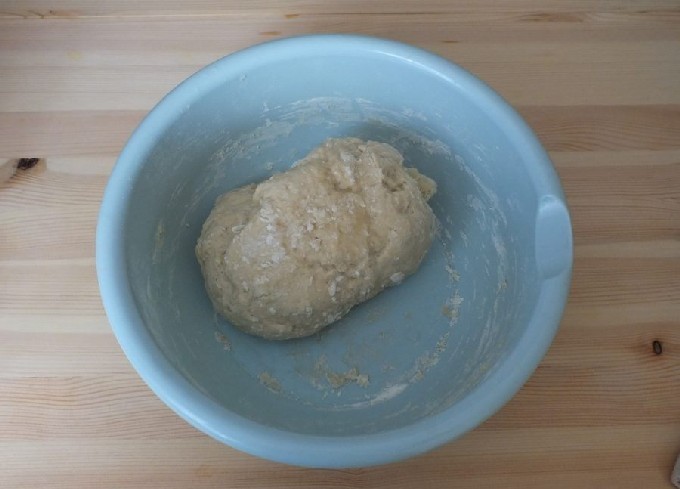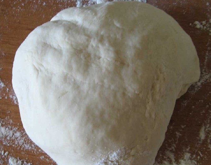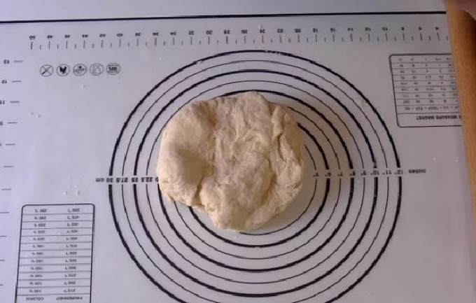 - Wanneer het deeg zich tot een bal verzamelt en elastisch wordt, laat u het 5 minuten op tafel liggen. Kneed daarna nog ongeveer 5 minuten.