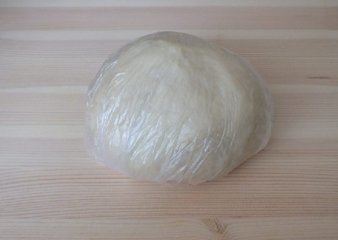 - Doe de deegbal in een plastic zak of wikkel hem in plasticfolie en laat ongeveer een half uur op kamertemperatuur liggen. Op dit moment begint gluten te werken, het deeg krijgt extra stevigheid en elasticiteit.