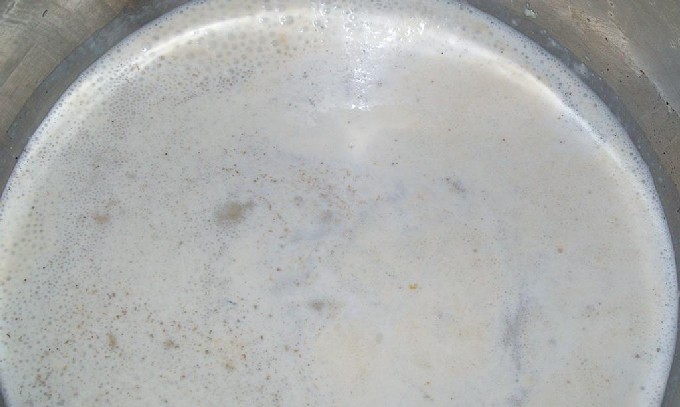 - Giet kefir op kamertemperatuur in een diepe, schone kom.