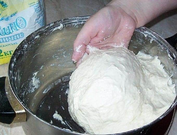 - Na de aangegeven tijd moet het deeg worden gekneed en tot een bal worden gerold. Je kunt zo'n deeg niet invriezen. Je moet onmiddellijk kleine stukjes deeg afscheuren, ze met je vingers tot dunne ronde cakes kneden en de vulling omwikkelen met aardappelpuree.