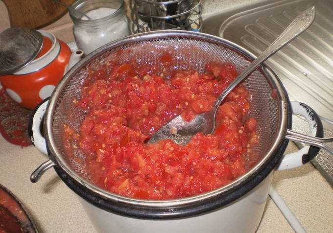 - Hoe maak je tomatensap voor de winter door een zeef?