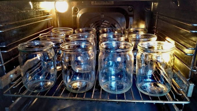- Wij controleren blikken en deksels op scheuren, schilfers en andere gebreken. Kies de juiste en maak ze schoon met zuiveringszout. Daarna spoelen en steriliseren we grondig gedurende ongeveer 10-15 minuten in de oven.