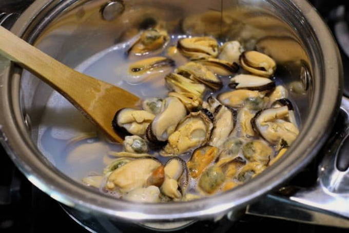- Bak apart in olijfolie met toevoeging van kruiden, mosselen en garnalen, licht gezouten.