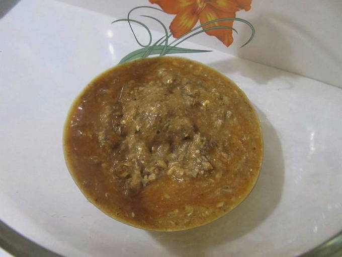 - Haal de aardappelen uit de bouillon en pureer ze in een koekenpan met tomatendressing. Doe het mengsel terug in de bouillon, voeg de rijst toe. Voeg de resterende ongebruikte kruiden toe en kook 10 minuten, tot de rijst gaar is.Zet het vuur uit, doe geperste knoflook en kruiden in kharcho, laat het 30 minuten trekken en serveer met een platte cake.