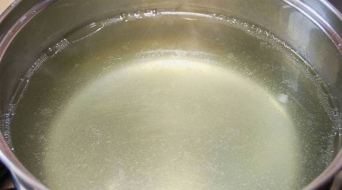 - Breng 1,5 liter water aan de kook, doe daar laurierblaadjes en peperkorrels.