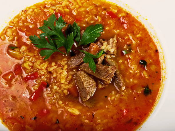 Pittige kharchosoep met tomatenpuree