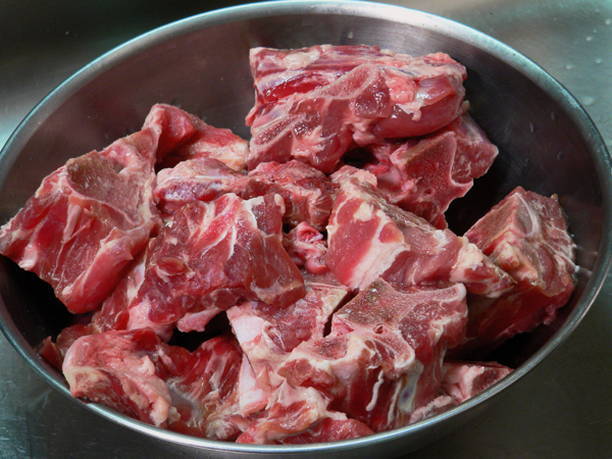 - Het vlees wordt gewassen en in porties gesneden. Giet het dan over met koud water en kook ongeveer 2 uur.