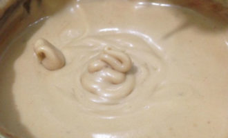 - De cakeroom is gemaakt van yoghurt goed vermengd met kefir. De yoghurt moet zoet zijn, met een aromatische smaak. Als de room je niet zoet, maar zuur lijkt, voeg dan suiker toe en klop goed met een garde.