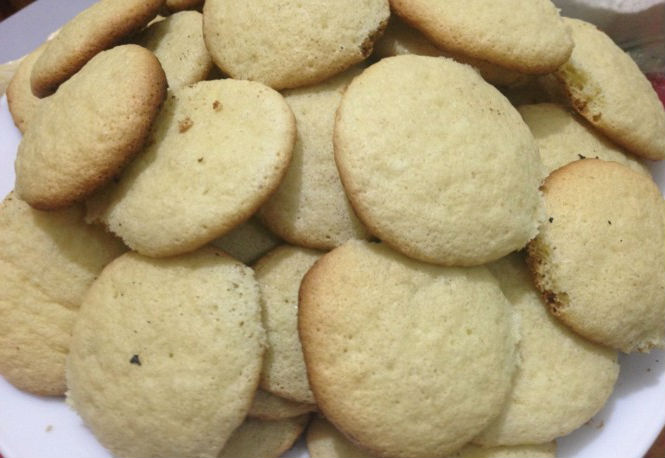 - Nadat alle koekjes zijn gebakken en iets zijn afgekoeld, doopt u ze in de dikke room en legt u ze op een schelpvormige schaal.