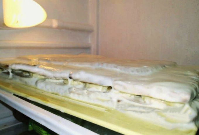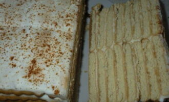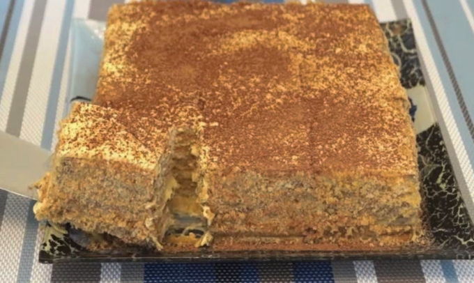 - De cake zonder bakken van koekjes en gecondenseerde melk is klaar!