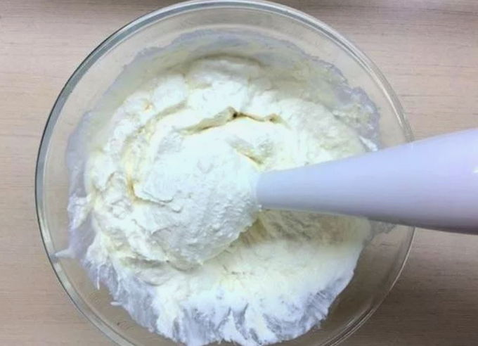 - Zet de blender aan en klop deze ingrediënten tot een gladde massa. Laat daarna de resulterende room 10 minuten opzij om de suiker volledig op te lossen.
