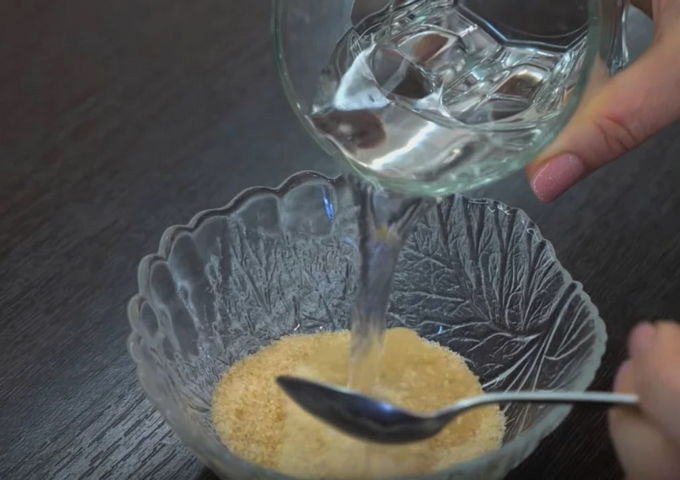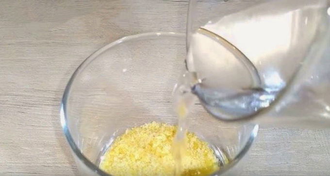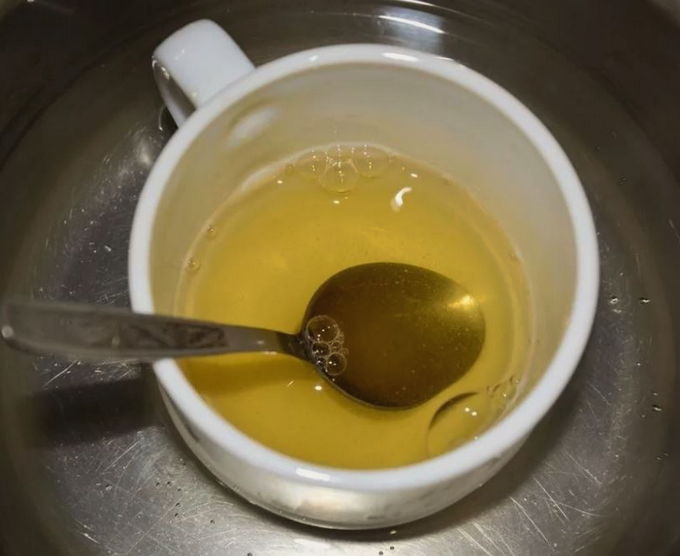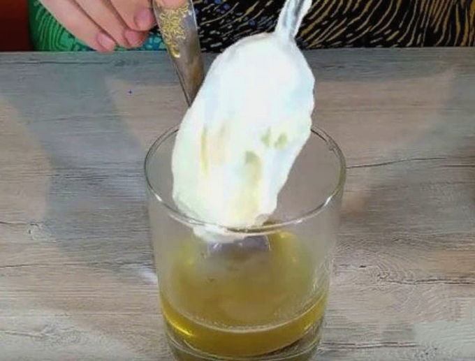 - Na het zwellen moet de gelatine worden gesmolten tot een vloeibare toestand. Het is belangrijk om het niet te koken.