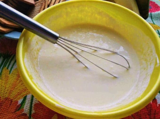 Klop alles goed door totdat de suikerkristallen zijn opgelost. Je kunt de zure room even laten staan.