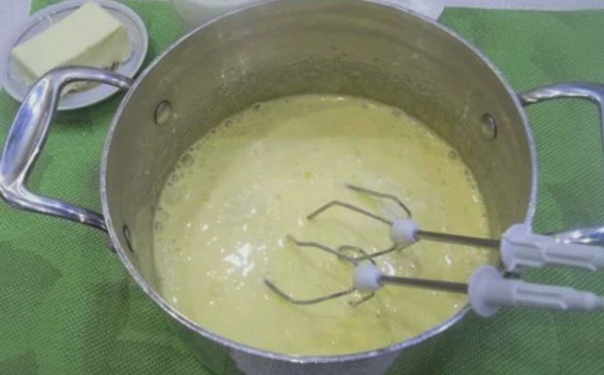 - Klop deze componenten met een mixer tot een homogene crème is gevormd.