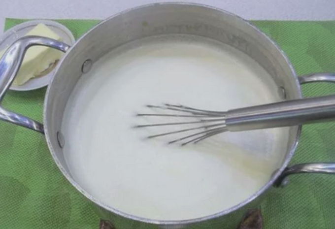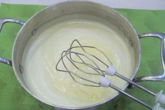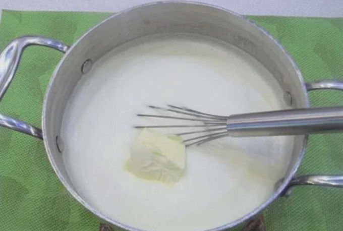 - Meng alles, zet de pan op het vuur. Kook de room, onder voortdurend roeren. Als de room begint in te dikken en de eerste luchtbellen verschijnen, haal dan de pan van het vuur.