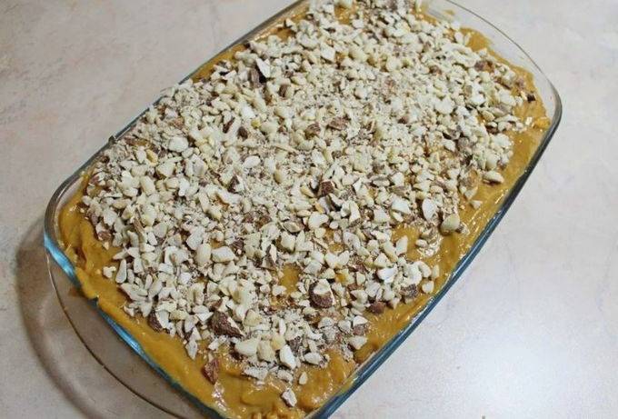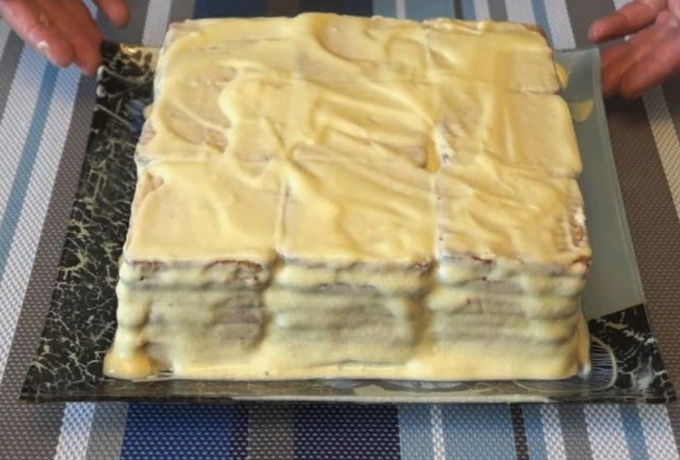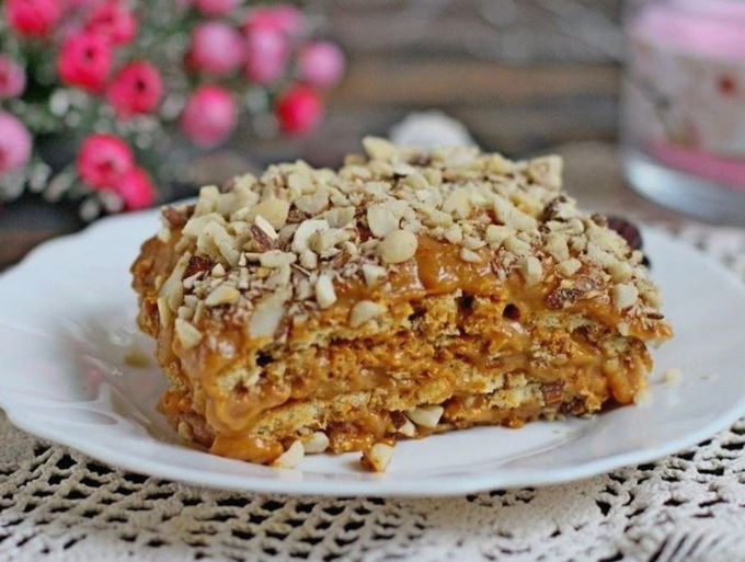 - Een cake zonder bakken van koekjes, gecondenseerde melk en boter is klaar!
