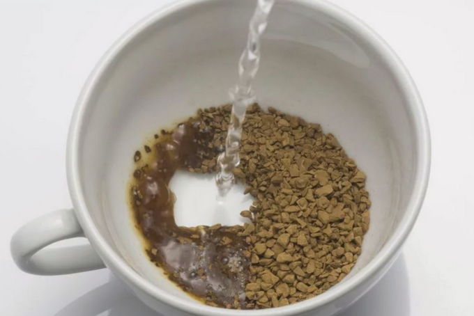 - Doe het in een kopje koffie, giet er kokend water over. Koel het drankje af.