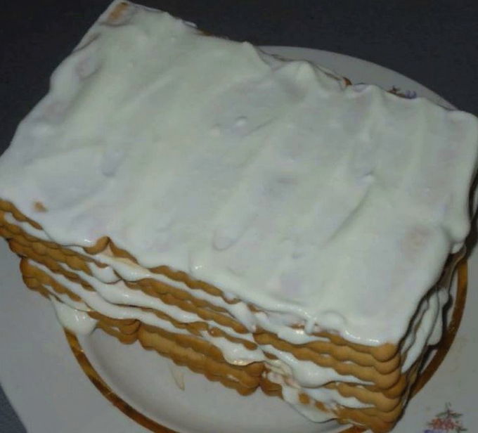 - Een cake zonder bakken van koekjes, gecondenseerde melk en boter is klaar!